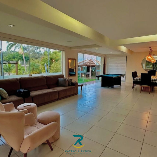 O imóvel conta com sala de estar espaçosa, cozinha integrada, suíte para hóspedes e quatro dormitórios, incluindo uma suíte no andar superior com vista privilegiada.